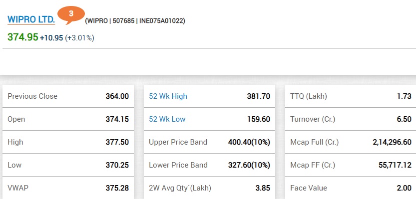 09:33 AM BSE में विप्रो के शेयर में 3% की बढ़त है। कंपनी ने मंगलवार को कहा कि उसका 9,500 करोड़ रुपए तक का शेयर बायबैक ऑफर 29 दिसंबर को खुलेगा और 11 जनवरी 2021 को बंद होगा। पिछले महीने कंपनी को शेयरधारकों से बायबैक योजना की मंजूरी मिली थी। इसके अलावा कंपनी ने बताया कि वह जर्मनी की कंपनी मेट्रो एजी के IT यूनिट को टेकओवर करेगी। इसके तहत कंपनी पहले पांच साल में लगभग 70 करोड़ डॉलर का निवेश करेगी।